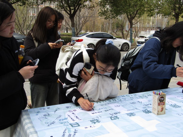 3月15日,法政学院方正学社与新苗法律援助工作室联合举办“维护消费权益,共建美丽生活”的校园普法活动。在新长校区创业园门口摆放“3·15”知识展板,并发放调查问卷。活动现场,同学们在“315”数字展板上创作,写下与消费相关的关键词,并在上面郑重签名。