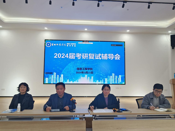 3月15日下午,信息工程学院以线上线下结合的方式召开2024届硕士研究生复试专题辅导会。学院党委副书记、院长朱立才,副书记姜琳,副院长吕伟鹏出席会议。学院党委书记郭晓俐主持会议。