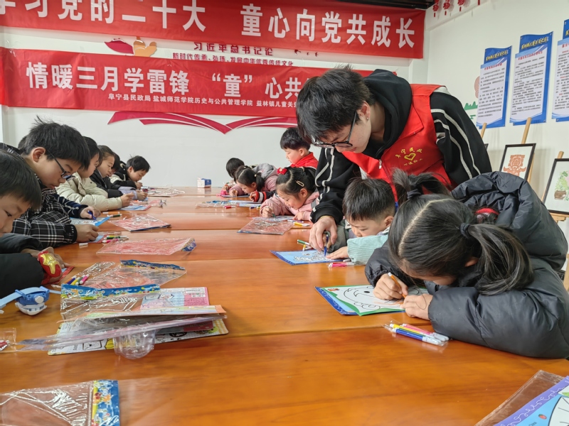 阳春三月,追“锋”前行。为进一步弘扬雷锋精神,近日,历史与公共管理学院学生党员来到阜宁县益林镇儿童关爱之家组织开展志愿服务系列活动,护航少年儿童健康成长。