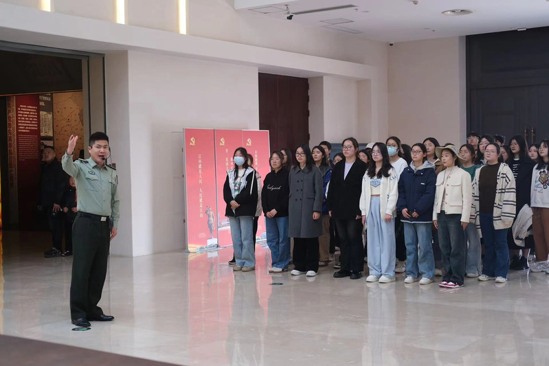 在新四军纪念馆展厅,大家认真聆听革命先烈的英勇事迹,驻足凝视一件件实物、一幅幅照片、一份份历史资料,感受革命先烈的爱国情怀。在广场中间的纪念碑前,大家怀着对先烈们的无限崇敬之情,向英雄纪念碑敬献鲜花,全体同学在纪念碑前重温入党誓词。“作为新时代的青年,今天身临其境上了一堂生动的实景微党课,让我深知革命胜利的来之不易,吾辈当铭记历史,珍惜现在,积极投身强国建设、民族复兴伟业中。”全程参与活动的教育科学学院学生叶梦凡这样说道。