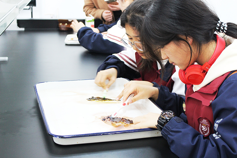 在湿地学院实验室和标本馆,湿地学院杜会聪老师介绍了形形色色的昆虫类型,杨丽老师从刷皮、漂白、染色、塑封等方面讲解了叶脉书签的制作过程。大家认真聆听,积极参与标本制作,对湿地动植物的形态、结构和特性有了更深入的了解。湿地学院周文琦同学表示,今天我和来自新疆的好朋友一起感受了黄海湿地的千姿百态,也交流了很多日常的学习生活情况,有机会我也一定会去新疆走一走看一看,中华民族是一家,我们有责任一起把共同的家守护好、建设好。
