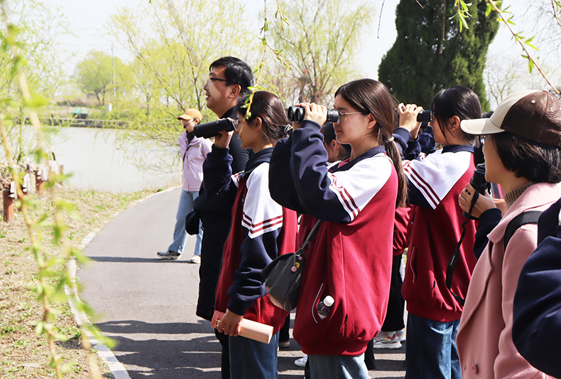当天,宣讲团志愿者与新疆高中班的同学先后来到江苏盐城国家级湿地珍禽自然保护区和湿地学院,开启湿地科普之旅。在保护区,大家一起聆听了保护区宣传教育科科长陈亚芹所作的以“走进黄海湿地”为主题的科普讲座,讲座从纪录片《一个真实的地方》开始,详细介绍了盐城黄海湿地的演变历程,尤其是后世遗阶段,盐城黄海湿地保护利用的具体情况。随后,湿地学院张华彬老师带领学生来到户外观鸟台,现场讲解观鸟、识鸟的知识和操作技能。
