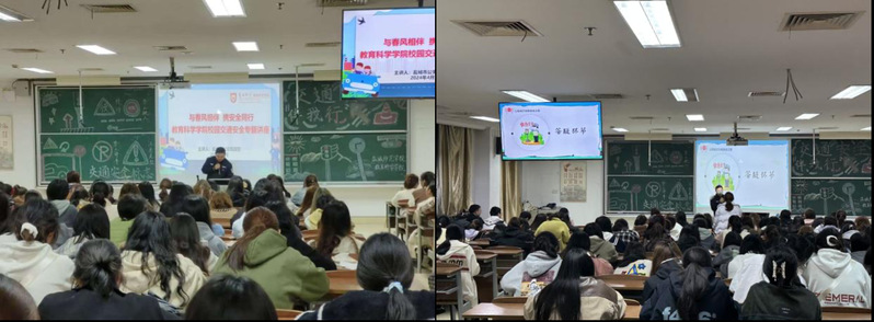 为进一步提升大学生交通安全意识和自我防护能力,预防和减少交通事故发生,营造安全和谐的校园交通环境,4月2日晚,教育科学学院邀请盐城市公安局民警开展以“与春风相伴,携安全同行”为主题的交通安全知识讲座。学院辅导员及各年级学生代表共200余人参加讲座。