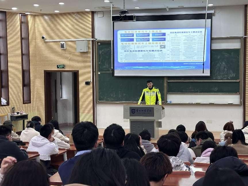 为进一步加强校园电动车安全管理,提高学生交通安全意识,营造安全有序的校园通行环境,4月3日下午,学校保卫处联合化学与环境工程学院开展交通安全专题宣讲,市公安局交警支队五大队新城中队李聪警官应邀主讲,近200名师生参加宣讲。