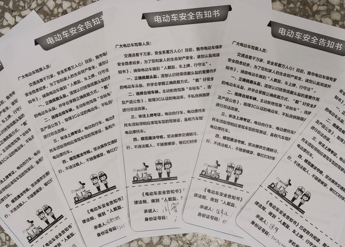 签署一份安全责任书。学院组织全体学生签署《电动车安全告知书》,要求大家当好“上牌照、戴头盔、不超速、不乱停”安全骑行模范表率。全院学生纷纷表示,日常出行时,一定遵守道路交通规则,避免交通意外伤害,做到平安骑行。