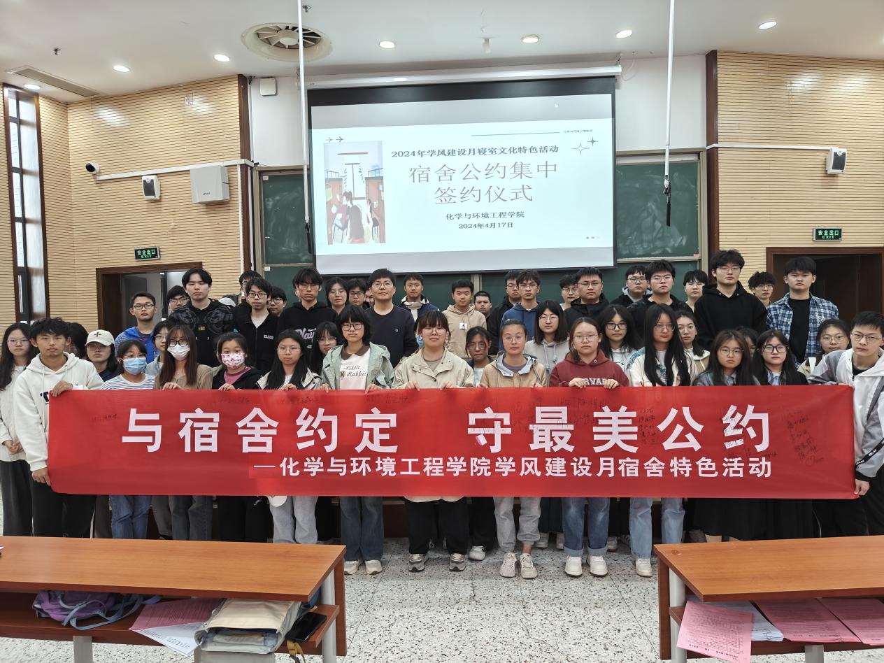 为进一步丰富学院学风建设月建设成果,持续优化提升学院舍风、班风和学风,化学与环境工程学院筹划开展了一系列宿舍特色文化活动。4月17日,“与宿舍约定,守最美公约”学生宿舍公约集中签约活动顺利开展,学院近百个学生宿舍现场参加活动。