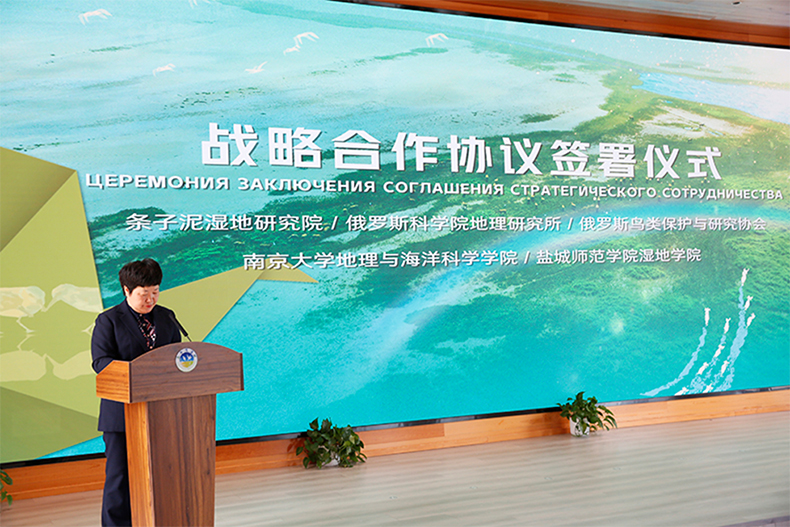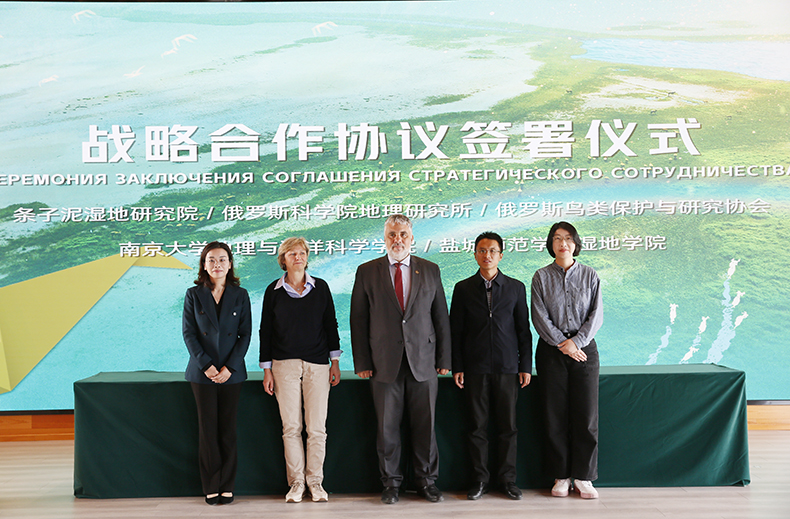 419日上午,我校湿地学院、俄罗斯科学院地理研究所、俄罗斯鸟类保护与研究协会,条子泥湿地研究院、南京大学地理与海洋科学学院共同签署候鸟保护合作共建协议。盐城市政协副主席、我校湿地学院院长唐伯平教授,湿地学院雷光春教授,南京大学地理与海洋科学学院院长鹿化煜等领导见证签约,我校湿地学院副院长张代臻代表学院现场签订合作共建协议。