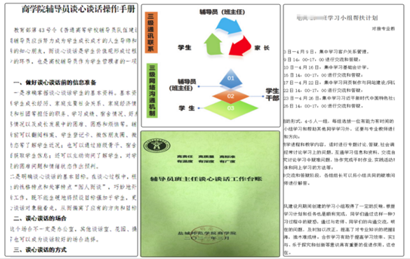 商学院辅导员严格遵守谈心谈话“十要”及“八必谈”要求,制定《商学院辅导员谈心谈话操作手册》,强化制度保障,建立信息台账制度,详细记录学生的基本情况,建立帮扶制度,采用教师指导和同辈指导相结合的方式,对经济困难、心理困难、学业困难等学生进行全面关注,构建“辅导员(班主任)—家长—学生”三级通讯联系机制及“辅导员(班主任)—学生干部—学生”三级网络沟通机制,及时发现并解决学生存在的问题。