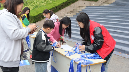 活动当天,志愿者早早的来到活动现场。在专业人员的指导下,积极地为参赛选手分发参赛证并带领大家入场。