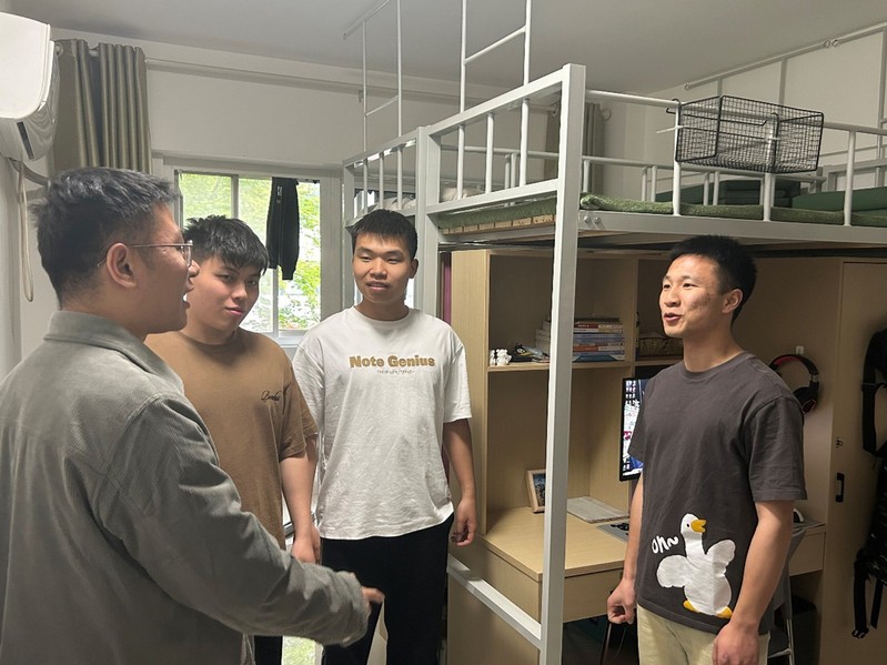 商学院师生走进退役士兵示范宿舍观摩学习
