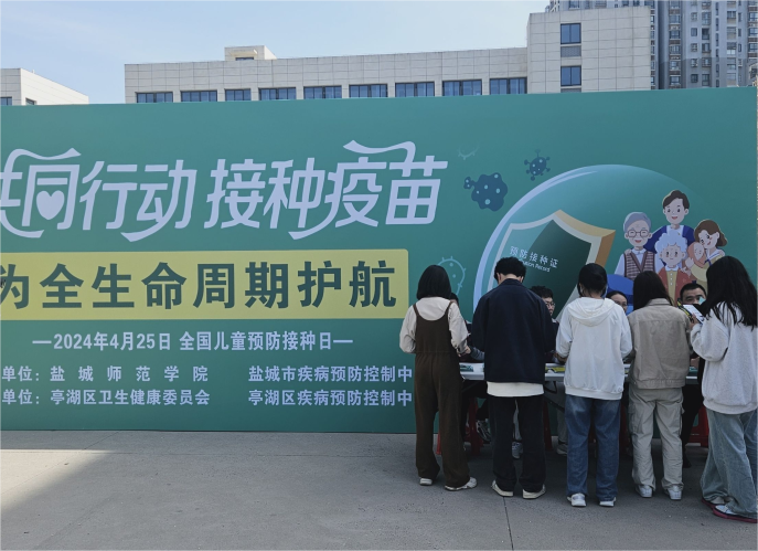 为加深同学们对疫苗接种的理性认识,积极参与疾病预防,4月24日下午,盐城师范学院校卫生所、文学院联合盐城市疾控中心在通榆校区开展“共同行动 接种疫苗 为生命周期护航”主题系列活动。