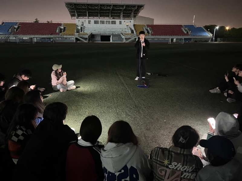 “夜空中最亮的星,请照亮我前行……” 5月3日晚,在新校区西操场散步的学生纷纷停下脚步,举起闪光灯走进人群加入音乐会。当晚,音乐学院在西操场举办“谱写五四新乐章 唱响青春主旋律”五四主题歌唱活动,学生用音乐表达新时代青年对“五四精神”的传承与发扬,传递当代新青年的新声音。