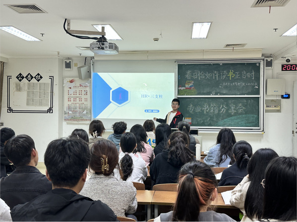 学院组织“王强班”创建班级开展“春日恰如许,读书正当时”读书分享会,分若干读书学习小组,采用小组汇报、互动讨论的形式分享《管理的实践》《卓有成效的管理者》《HR十项全能》《非暴力沟通》等管理学专业书籍,通过读书分享为学生提供学习交流平台,引导学生静下心阅读,沉下心思考,潜下心感悟,营造“爱读书、善读书、读好书”的浓厚氛围。
