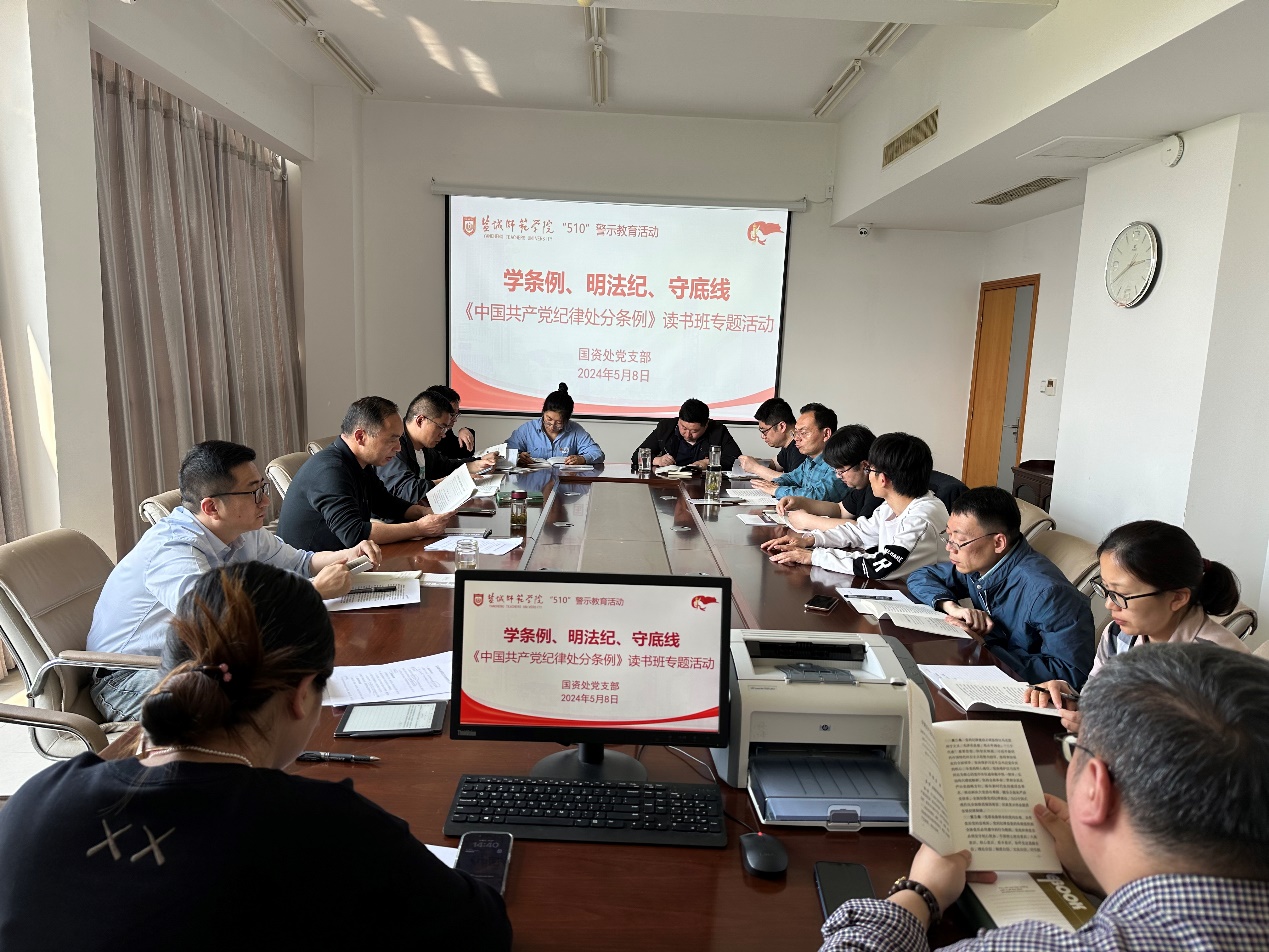 5月8日下午,国资处党支部开展党纪学习教育专题读书班。支部书记蔡志宏主持读书班。
