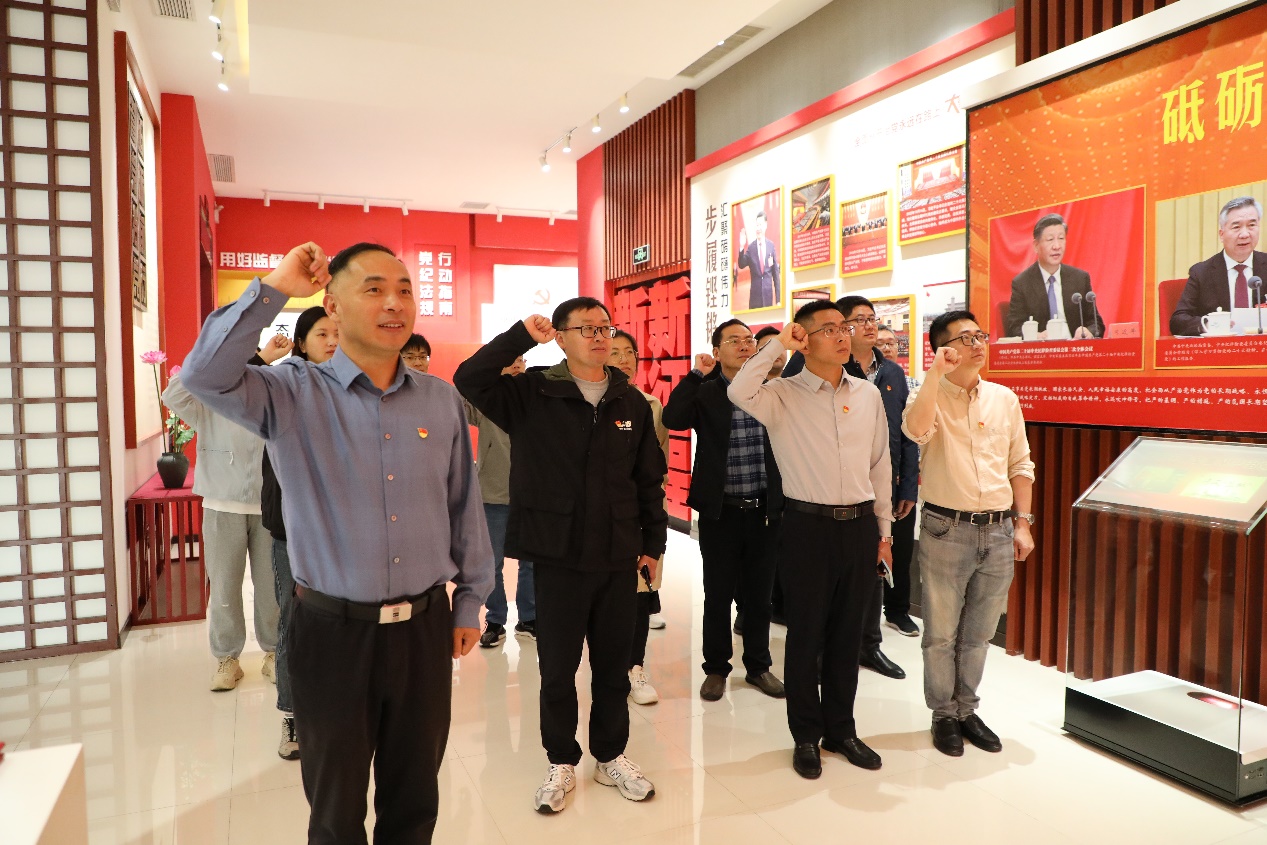 在盐城尚德昭廉教育馆,全体党员沉浸式参观了“德厚流光、不忘初心”“警钟知畏、镜鉴存戒”“管党治党、砥砺前行”三大主题展区。警示图片引人深思,反面案例令人警醒,让大家深刻认识到腐败行为的严重危害。大家深受震撼,纷纷表示将以这些案例为镜,时刻保持警醒与自律,做到慎独、慎言、慎微,争当廉洁从业的表率。支部书记蔡志宏带领全体党员重温入党誓词,回溯入党初心,接受党性教育洗礼。