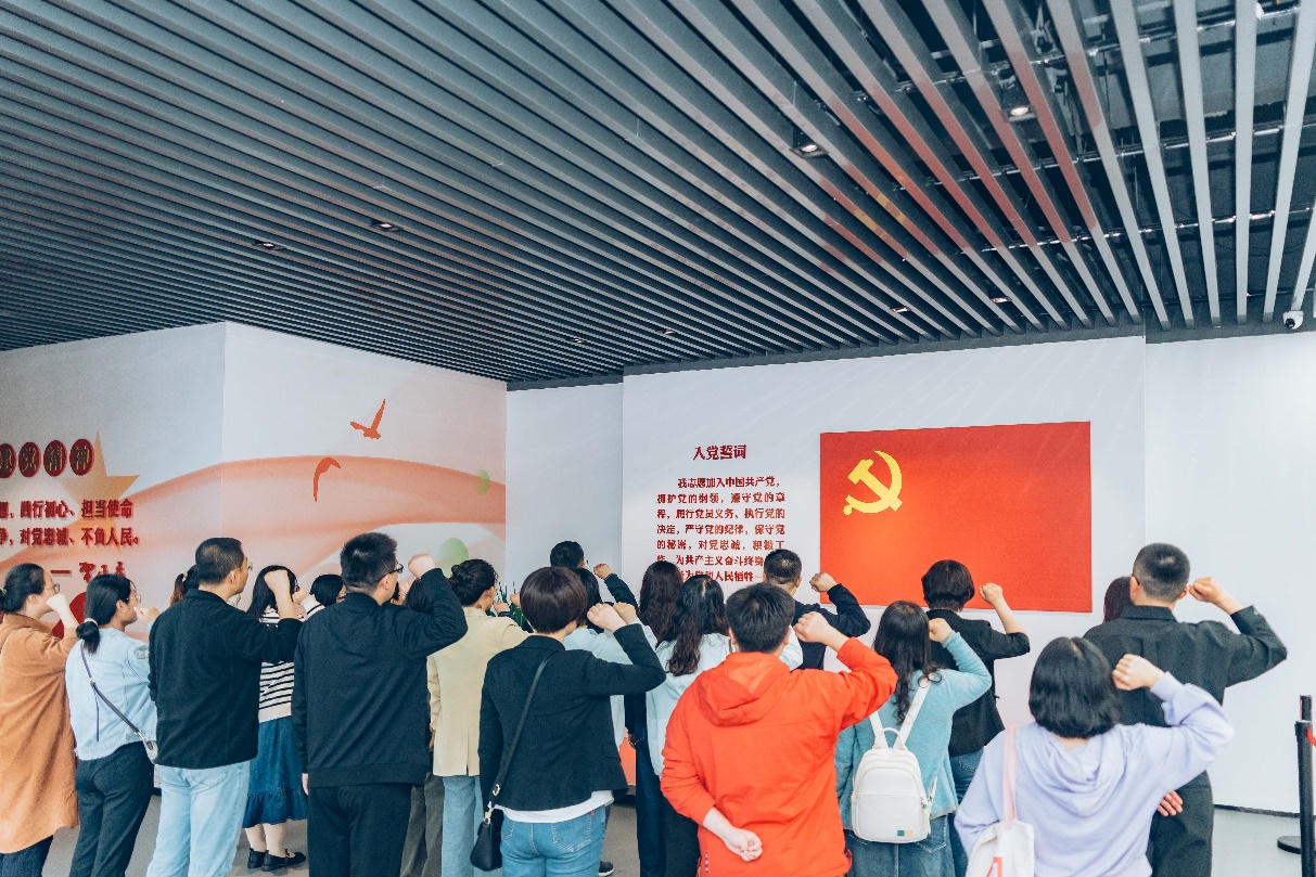 在建湖县党性教育基地,大家依次参观“序厅”“革命火种,点燃盐阜”“浴血疆场,巍巍丰碑”“芦荡烽火,鱼水情深”和“前赴后继,英雄辈出”五个展区,体会先辈在峥嵘岁月中不畏艰难困苦、顽强拼搏、无私奋斗的伟大精神。参观最后,全体党员重温入党誓词,追忆入党初心。