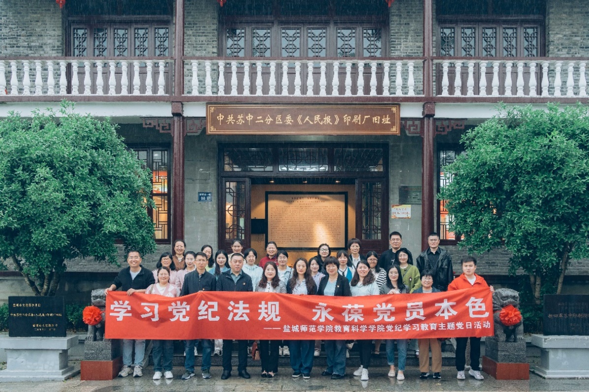 5月11日,教育科学学院党委组织党员教师赴新四军苏中印刷所旧址、建湖县党性教育基地和莲廉文化教育馆开展“学习党纪法规,永葆党员本色”主题党日活动。