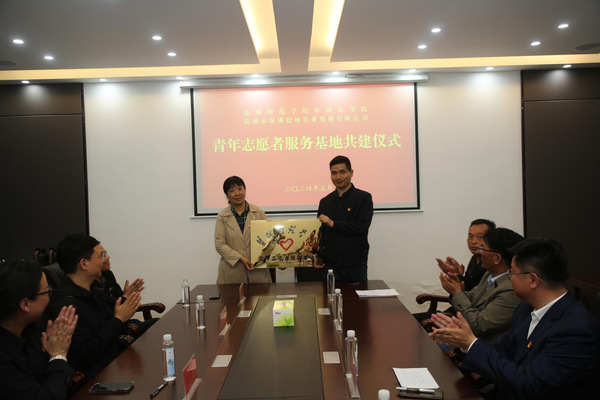 双方就具体合作共建事项达成共识并签订合作协议。张宾州与陆胜利共同为实习就业基地、盐场“宋公堤纪念馆”青年志愿者服务基地揭牌。会前,双方共同前往位于盐场内的宋公堤纪念馆开展红色研学,参观新滩盐场制盐生产区、了解了制盐工艺生产流程,场区建设情况等。