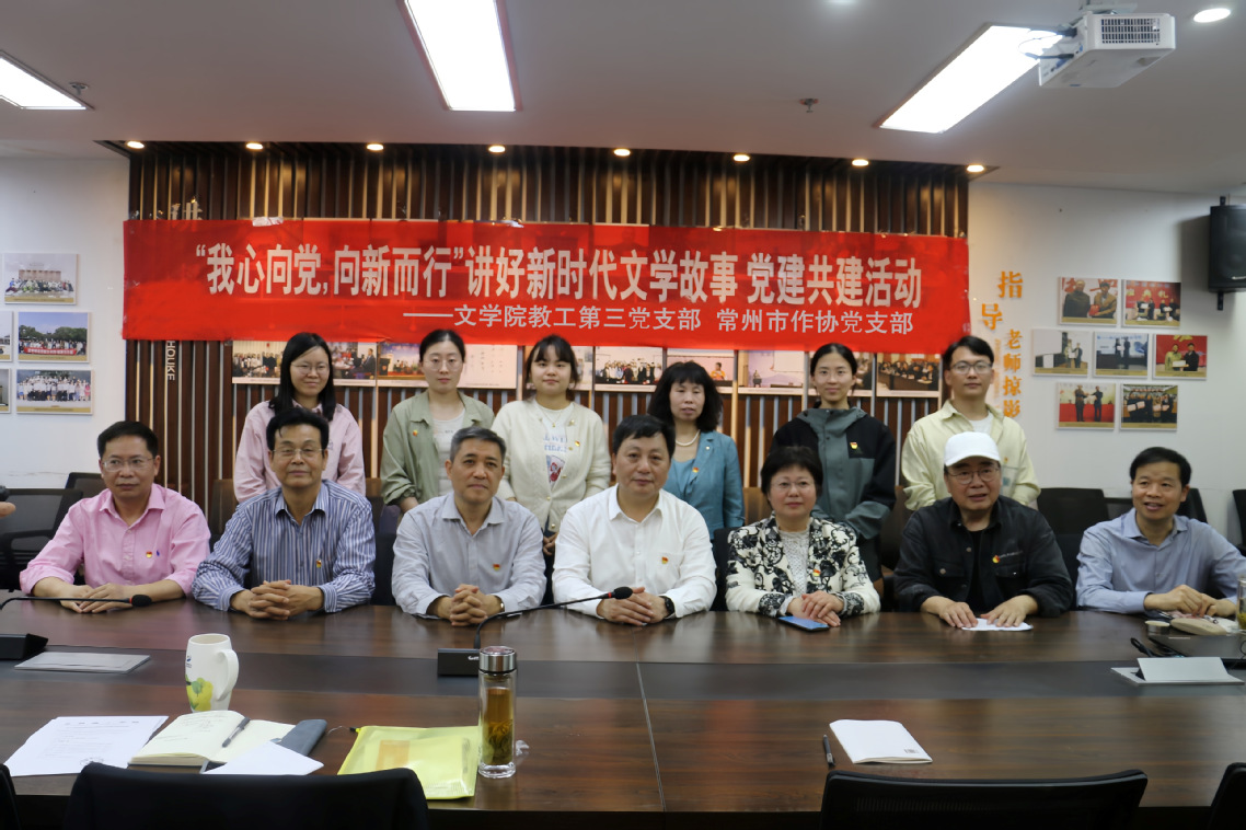 5月10日下午,文学院教工第三党支部与到访的常州市作家协会党支部,在江苏省作家资源中心举行主题为“我心向党,向新而行——讲好新时代文学故事”的支部结对共建活动,常州市作协党支部书记卞优文、主席李怀中及常州市各市区级作协主席、文学院教工第三党支部书记王玉琴及支部党员焦丽梅博士、徐明翔博士等参加活动。