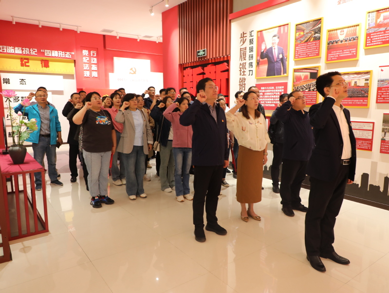 在讲解员的引导下,全体同志认真观看警示教育专题片,参观“德厚流光、不忘初心”“警钟知畏、镜鉴存戒”和“管党治党、砥砺前行”三个展区。一位位勤廉兼优的模范、一个个触目惊心的案例真切地呈现在大家眼前,大家深切感悟到“反腐倡廉必须常抓不懈,拒腐防变必须警钟长鸣”的深刻道理。全体党员同志面对党旗、举起右拳,重温入党誓词。