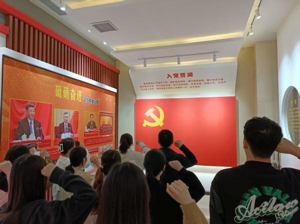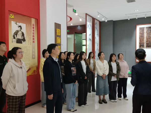 尚德昭廉教育馆内,在讲解员的引导下,大家依次参观“德厚流光、不忘初心”“警钟知畏、镜鉴存戒”“管党治党、砥砺前行”三个展区,一幅幅图片、一帧帧镜头,直观生动地展示了勤廉楷模的先进事迹县委书记焦裕禄的精神伟力,革命烈士赵一曼的红色家书等感人事迹深深打动在场的每一位学生党员。活动现场,全体学生党员在老师的带领下再次重温入党誓词。