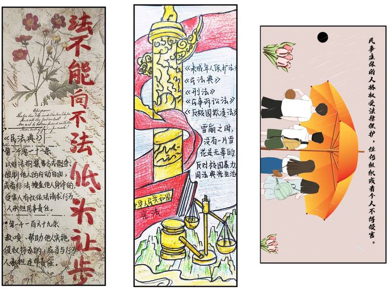 5月7日11日文学院在线上征集法治书签,学生以漫画、文字、图案等方式宣传法治理念,传递法治校园正能量。