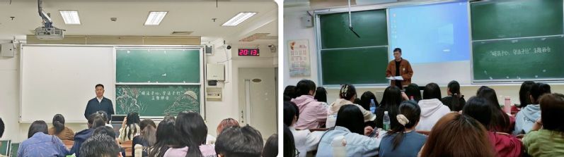 文学院各班级积极行动,有序召开法治宣传教育主题班会,以学习贯彻习近平法治思想为主线,将法治教育与心理健康教育、安全自护教育、防欺凌教育等相融合,切实增强学生法治观念。5月8日学院在主楼B309教室举办法治专题讲座。本次讲座紧密结合法律和道德的力量法治和德治的功能,向学生普及法治知识,增强学生法治意识,营造出良好法治氛围。