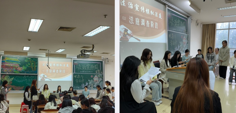 5月11日学院还在主楼B309举办模拟法庭活动。学生积极参与模拟法庭,参演法官、书记员、被告人、审判人等角色,通过生动的演绎感受法治的力量,有效地增强法治教育的实效性。当天,学院还在主楼B309组织学生观看多部法治主题影视作品,积极交流影片中传递的法治精神,引导学生学会运用法律手段解决问题,切实维护自己的合法权益。此外,学院在线上举办《第二十条》观后感征集活动。