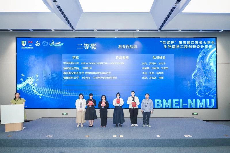 据悉,此次竞赛由江苏省生物医学工程学会主办,南京医科大学、江苏省生物医学工程学会教育与科普专业委员会、常州西太湖科技产业园管理委员会承办,巨鲨医疗集团冠名,生物医学工程国家级实验教学示范中心(东南大学)、生物医学工程江苏省实验教学示范中心(南京医科大学)、江苏集萃医工交叉技术研究所有限公司等协办。竞赛共设有生物医学传感与体外诊断组、生物医用材料组、科普作品组、生物医学电子与康复组和人工智能与生物医学大数据组。项目设计涵盖生物医学材料、新型传感器技术、生物医学检验技术、康复工程技术等领域。
