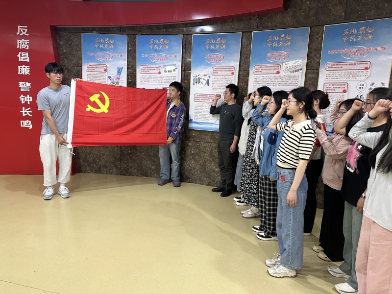 在教育馆内,大家依次参观“德厚流光、不忘初心”“警钟知畏、镜鉴存戒”和“管党治党、砥砺前行”三个展区,并一同观看廉政警示教育专题片。一个个案例、一条条警示、一声声忏悔,让现场的学生党员接受了一次深刻的思想洗礼,充分认识到筑牢思想防线、守好纪律底线、永葆清正廉洁的重要性。学生第一支部书记蔡红全现场作题为《党旗引领铭初心 青春奋进新征程》的廉洁主题微党课,结合典型案例,以案施教,以案释法,勉励毕业生党员坚定理想信念、恪守政治纪律、锤炼党性修养,在新的工作岗位上继续发挥党员的先锋模范作用,以热忱的心、十足的干劲,彰显青春风采,贡献青春力量。