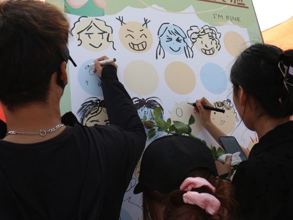 活动分为“绘出心中的爱”绘画主题活动和“留下你的笑脸”广场活动。活动中,同学们运用手中的画笔描绘成长过程中被关爱的场景,共收集到优秀作品34件。通过绘画活动,帮助学生发现平凡生活中的“暖阳”,树立健康向善向美的积极心态。在广场活动现场,色彩斑斓的画笔和空白的“笑脸墙”吸引了众多同学驻足。大家拿起画笔,或低头沉思,或洋溢自信,纷纷在“笑脸墙”上留下笑脸,有的笑脸天真无邪,有的俏皮可爱,有的充满自信和力量,每一个都独一无二,洋溢着快乐和希望。