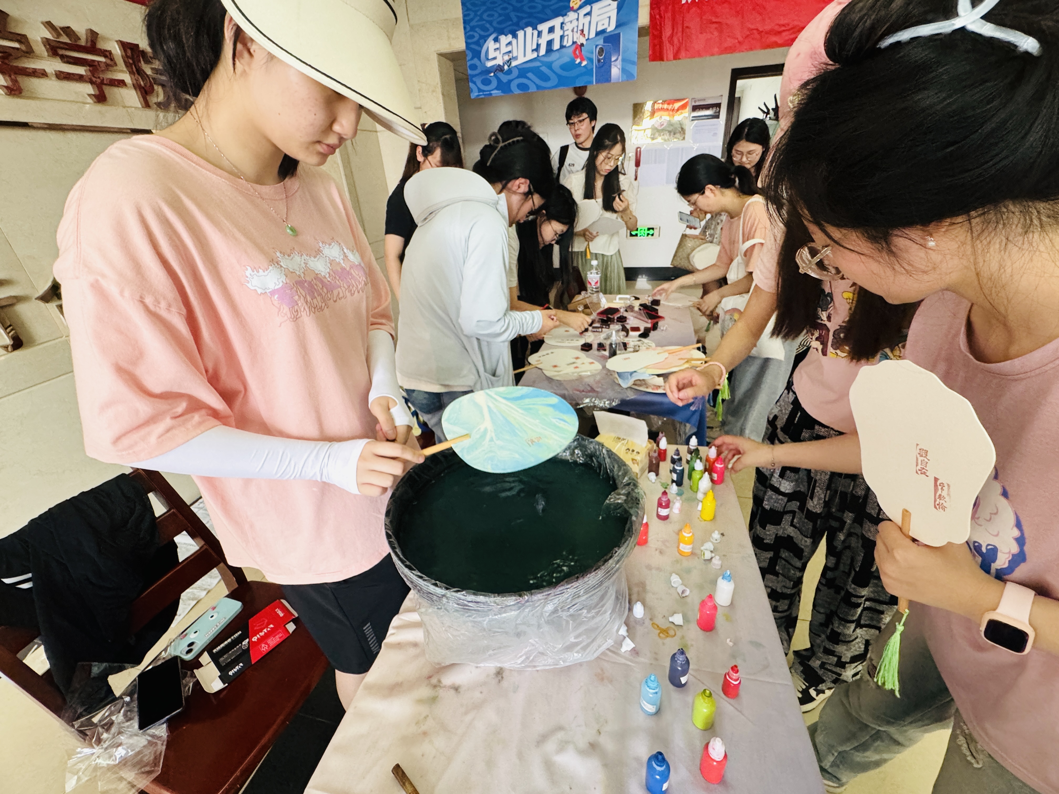 在教育科学学院2024届本科毕业生即将开启新的征程,为给即将毕业的同学留下美好的回忆,近日,学院在通榆校区主楼11楼大厅举办了一场别开生面的毕业季暖心活动——制作非遗漂漆扇。