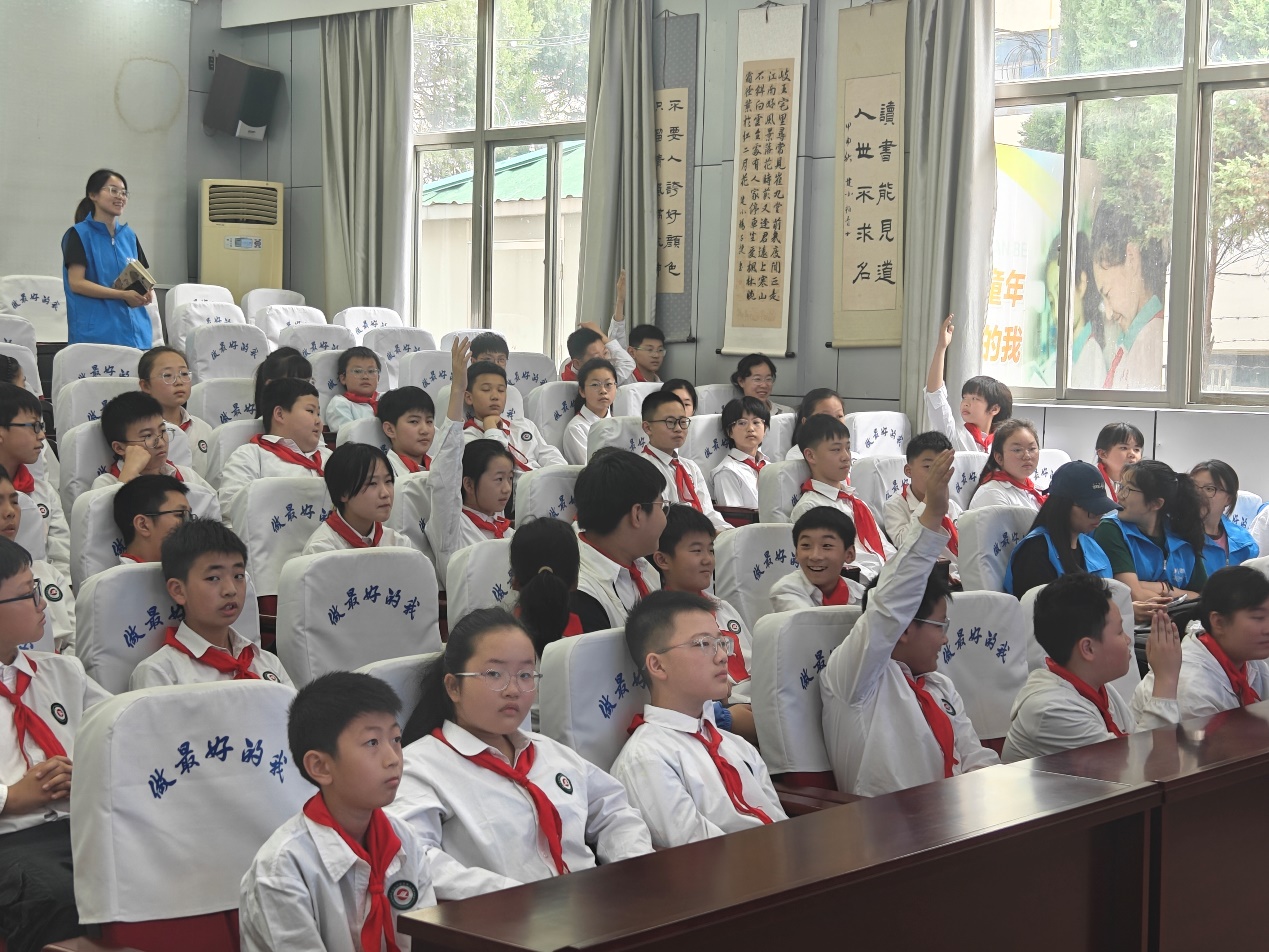 活动中,宣讲员围绕青少年该如何弘扬和践行“两弹一星”精神进行互动,学生们热情高涨,纷纷表示要努力学习科学文化知识,争做新时代好少年。