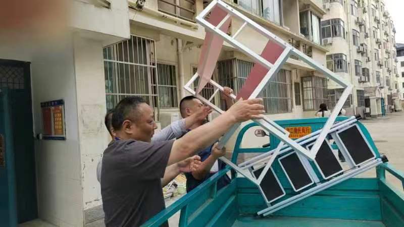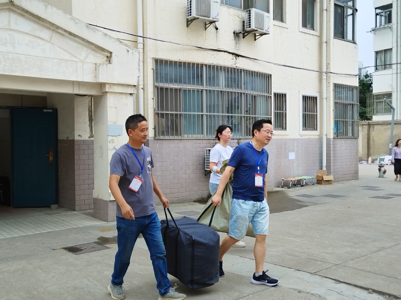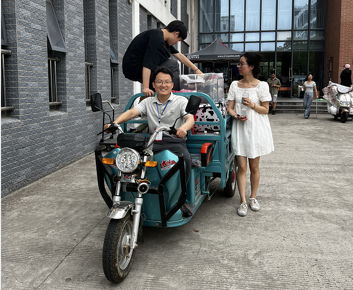 为切实解决毕业生在校内搬运行李难的问题,后勤党总支积极谋划,根据毕业生在各宿舍楼的分布情况,结合志愿者的运力实际,分别在两个校区宿舍楼各设置了23个服务点,每个服务点安排58名志愿者协助搬运行李,同时各安排2辆三轮车专门负责接驳运送。需要协助搬运行李的毕业生大多住在较高楼层,这就意味着志愿者需要频繁上下楼梯,这对于年纪较大的后勤工作人员来说是不小的挑战。但只要毕业生有需要,他们都会立即响应,即便是冒着中午的高温,搬运、接驳的脚步始终没有停歇。汗水将志愿者的衣衫浸透,但换来了毕业生一句句真诚的感谢。