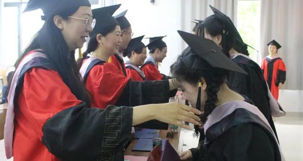 李叶青王若丁分别作为教师代表、毕业生代表发言。副院长周丽宣读授予学士学位决定。副院长唐萍为2024届校友联络员代表颁发聘书。学院领导老师为毕业生颁发毕业证书和学位证书,并拨穗正冠