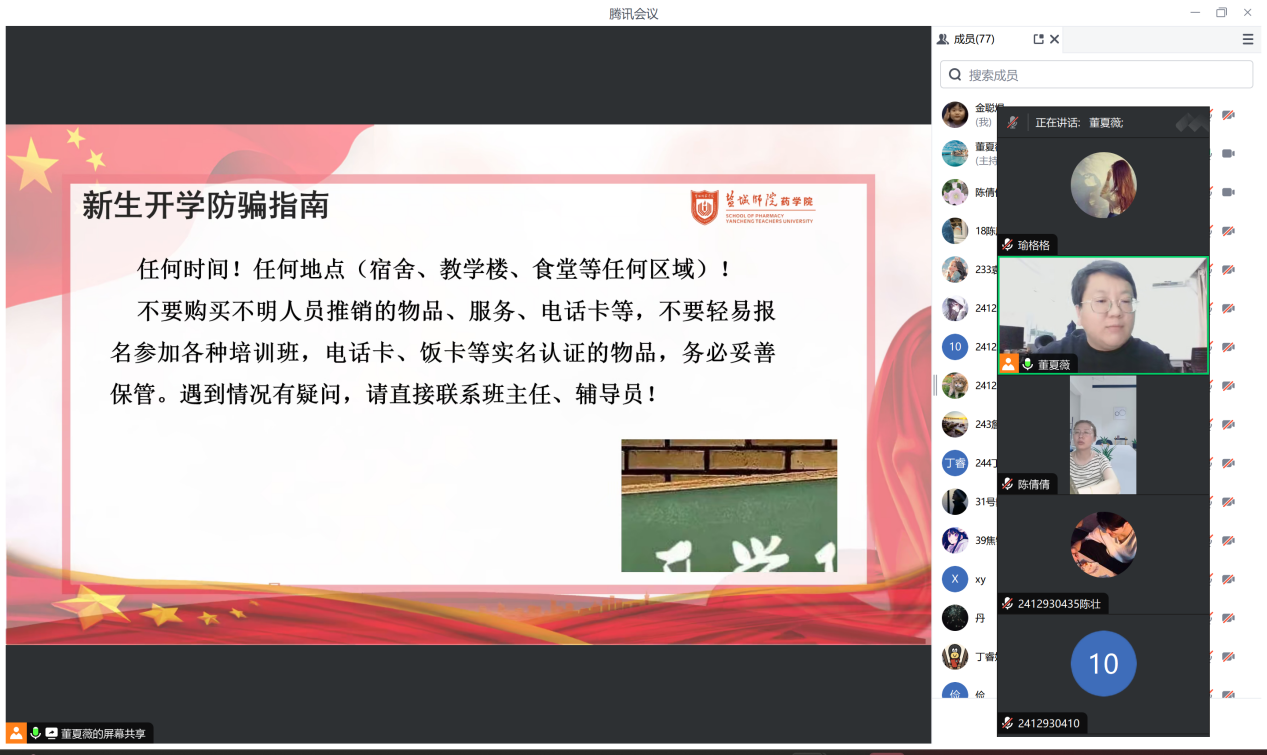 为更好搭建家校沟通的桥梁,促进新生及家长对大学学习生活、学校和学院教育环境、专业特色及入学准备工作的了解,94日晚,药学院在腾讯会议平台召开2024级新生线上家长会,学院全体班子成员出席会议。