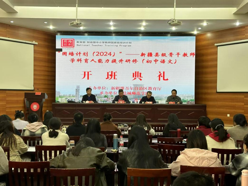 近日,文学院承办的“国培计划2024”新疆县级骨干教师学科育人能力提升研修活动(初中语文)开班仪式在通榆校区南园2号国培报告厅举行。成教处党总支书记韩诚,文学院副院长冯青青,项目首席专家史成明出席会议。