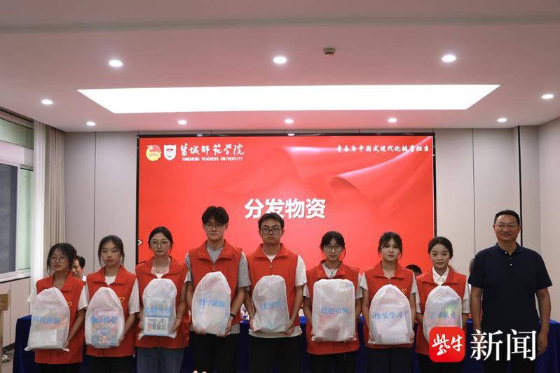 签约仪式上,校团委书记陈晔、盐都团区委副书记徐晗为商学院9支社会实践重点团队授旗,其中,与盐渎街道共建的“盐小圈”青年志愿服务队入选2025年团中央关爱行动“七彩假期”志愿服务项目。随后,商学院党委副书记、院长殷凤春和盐渎街道人大工委主任张兴华共同签署了《共建大学生社会实践基地协议书》并揭牌。征汉年为志愿者代表分发了社会实践物资,庞波向“盐小圈”青年志愿服务队指导教师耿明、王秉欣颁发了社会实践指导教师聘书。