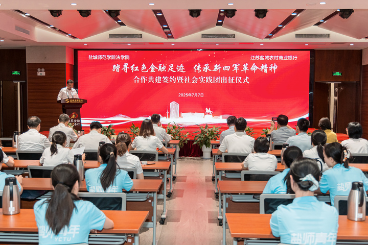 交汇点讯7月7日,盐城师范学院历史与公共管理学院“踏寻红色金融足迹 传承新四军革命精神”实践团举行出征仪式。80余名师生将共同开启一场跨越时空的红色金融精神传承之旅。