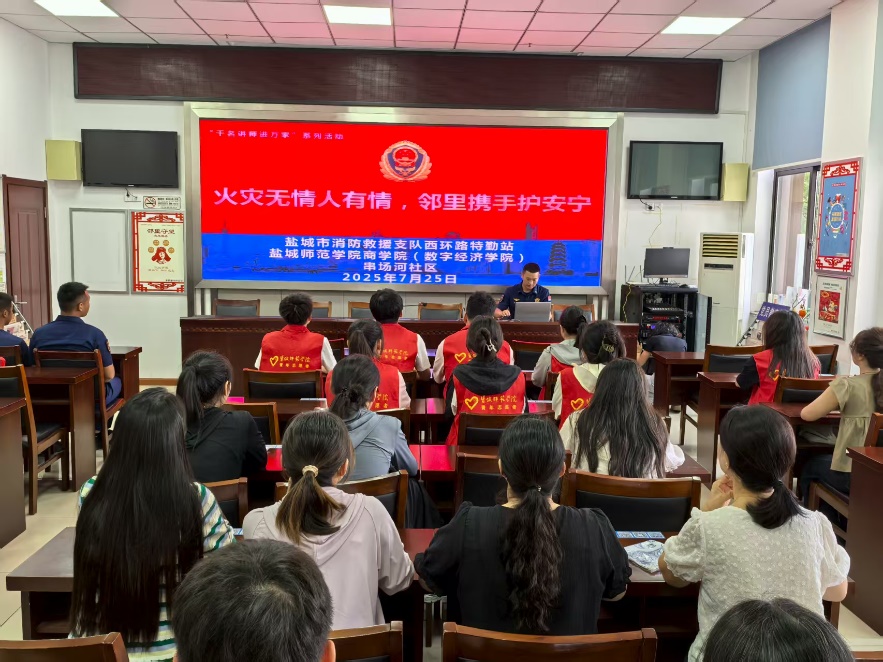 为切实提升社区居民消防安全意识和应急自救能力,深化校社联动服务基层,近日,盐城师范学院商学院(数字经济学院)团委携手盐城市消防支队西环路特勤站走进新都街道串场河社区,成功举办“火灾无情人有情邻里携手护安宁”主题消防实训活动。