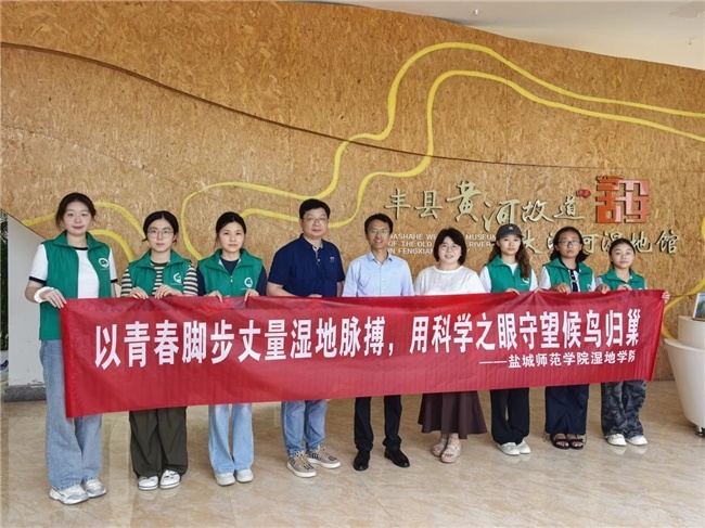 近日,盐城师范学院湿地学院“科普宣讲”社会实践团师生走进江苏徐州丰县大沙河国家湿地公园,以“探秘沙河湿地,守护生态家园”为主题开展社会实践活动。此次活动由盐城市科协指导,湿地学院院长张代臻、党总支副书记何静带队,旨在推动学生从课堂理论走向湿地一线,在实践中锤炼湿地保护本领。