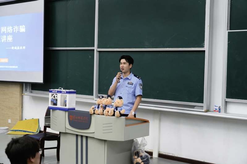 9月24日,音乐学院邀请新城派出所在新长校区公共教学楼C201教室举办反电信诈骗专题讲座。新城派出所民警以及音乐学院 200 余名师生代表共同参与。