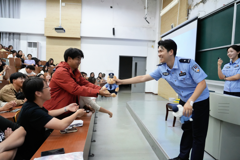 讲座期间,新城派出所朱警官以“防电信网络诈骗”为主题,从电信网络诈骗的定义、常见诈骗套路解析、防范技巧科普等方面开展反诈知识宣讲。朱警官结合“兼职刷单返利”“冒充亲友借款”“网络购物退款”“假冒客服理赔”等典型诈骗案例,通过“以案释法”的形式,邀请学生现场演示网络诈骗时骗子的话术与套路,直观拆解新型电信诈骗的作案逻辑与隐藏陷阱。同时,朱警官重点普及识别诈骗的实用技巧,牢记“不听、不信、不转账”的反诈核心原则,从源头避免经济损失,切实增强自我防范意识。现场互动环节,同学们围绕日常遇到的反诈热点问题积极提问,民警逐一耐心解答,进一步深化大家对反诈知识的理解。