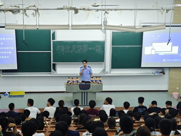 讲座伊始,朱津苇警官以一组电信网络诈骗数据开篇,直观展现当前反诈工作的严峻形势。随后,他围绕大学生群体高发的诈骗类型,结合“刷单返利”“虚假购物退款”“校园贷”等真实案例深度剖析,从诈骗分子的话术设计、诱导逻辑到作案流程,层层拆解骗局套路。其中,多起发生在同龄人身上的案例细节,让在场新生深刻意识到“诈骗就在身边”,彻底打破“诈骗离自己很远”的认知误区。