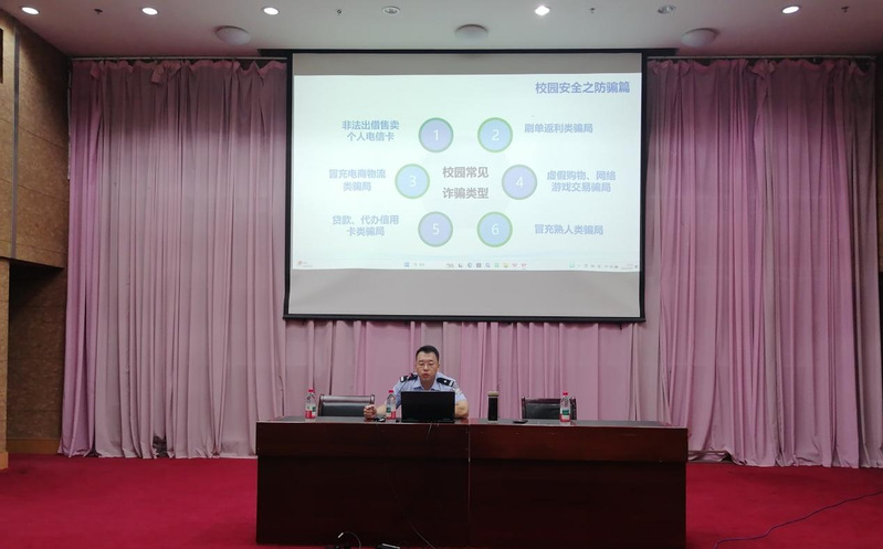 学院邀请盐城市公安局亭湖分局刘警官为学生作“高校安全防范”反诈主题报告。他结合真实诈骗案例拆解网络诈骗套路,系统阐述网络诈骗的常见类型,增强广大师生预防诈骗意识和自我防范能力。