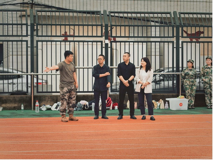 在训练现场,学院领导班子驻足观摩新生队列训练,细致查看军姿、转体、齐步走等动作的规范性,密切关注同学们的精神风貌与训练状态。训练间隙,领导们与带队教官亲切交谈,详细了解军训日程安排、训练强度及后勤保障情况,关切询问教官的工作生活与身体状况,对教官的专业指导与辛勤付出表示诚挚感谢。随后,领导老师走到新生中间,与学生亲切互动,仔细询问大家的训练感受、校园适应情况及身体状态,反复叮嘱同学们在刻苦训练的同时注重劳逸结合,及时补充水分、做好防晒防护,确保以饱满精力投入每日训练。