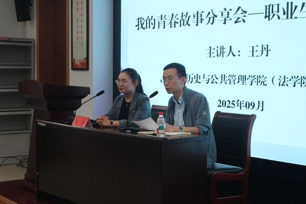 9月26日下午,历史与公共管理学院(法学院)特邀优秀校友、江苏师范大学公共管理与社会学院王丹副教授在法律服务学院报告厅举办青春故事分享会之职业生涯规划指导讲座,学院副院长吉鹏主持分享会。