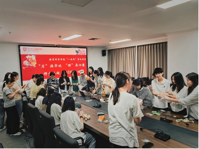 随后,学院领导与新生共同制作中秋月饼。大家一同揉面团、包馅料、压模具,在动手实践中感受传统节日的文化魅力。制作过程中师生之间亲切唠家常,详细询问假期出行与生活安排,对准备留校过节的学生表达暖心关怀,让远离家乡的新生切实感受到学院的温暖。