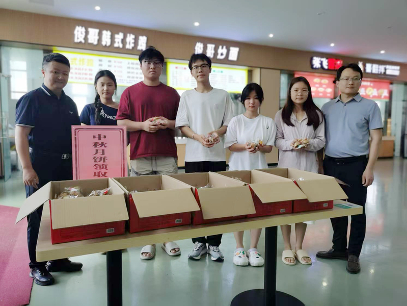 此外,10月6日,我校后勤部门在所有开放食堂同步开展“中秋免费送月饼”活动。中秋节当天,两个校区食堂里洋溢着节日的喜庆气氛,食堂入口处,各种口味的独立包装月饼整齐摆放前来就餐的同学都会收到一份月饼表达学校对假期留校学子的美好祝福。
