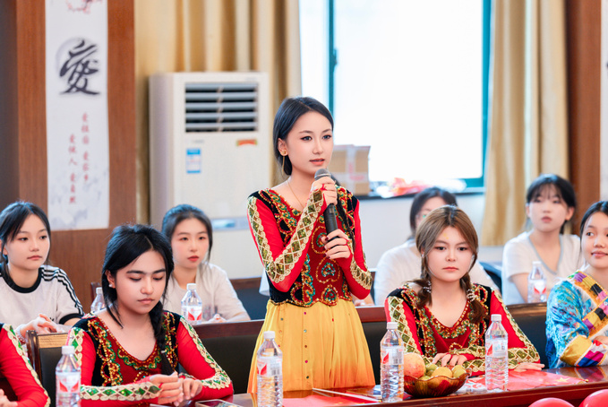 在交流环节,新生代表先后自我介绍,畅谈各自民族、家乡的生活习惯、风土人情、文化特色等,并分享他们入校以来在日常生活、学习方面的感受。与会师生共同观看铸牢中华民族共同体意识主题教育视频。